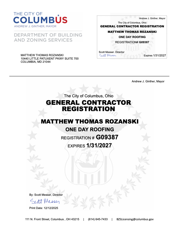 We are proud to serve the entire state of OHIO. View our license information below. Lic No 202128802198 Columbus G09387 exp 01/31/2027